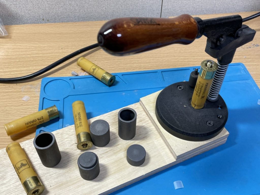 このShell sizerだが、前後ともShellを絞ることができる。しかし、双方の穴径が異なり、線がついている方が大きい。これは二段階で絞り込むことを示唆しているのだろうか?自分は気づかず、しばらく狭い方にパワープレイで打ち込んでいた。レバー折れそうだった。しかし結局、レバー操作自体が上達して、狭い方だけで作業はできている。